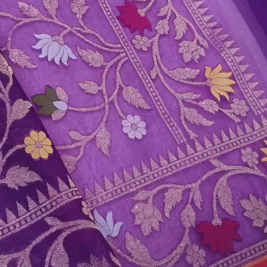 Pure Kora Silk Ektara Tilfi Cutwork Jamdani Banarasi Saree