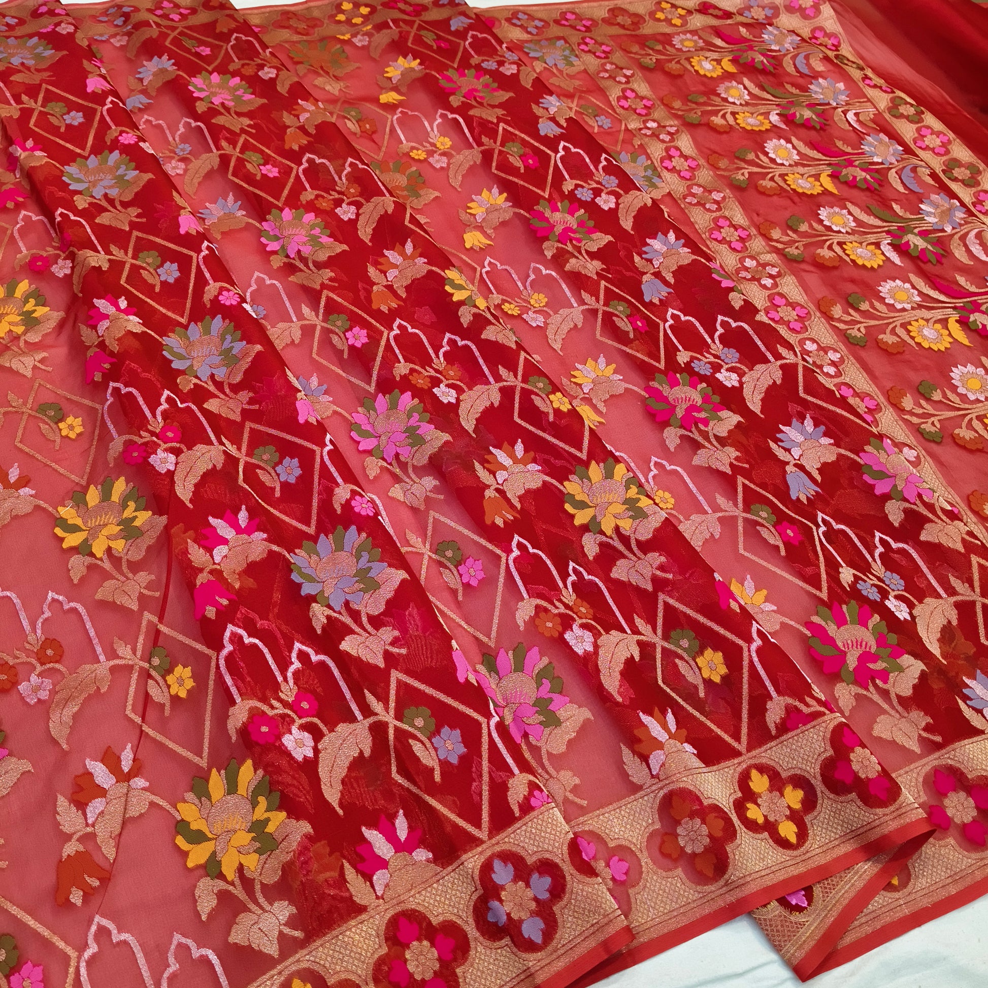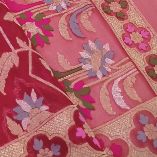 Pure Kora Silk Ektara Tilfi Cutwork Jamdani Banarasi Saree