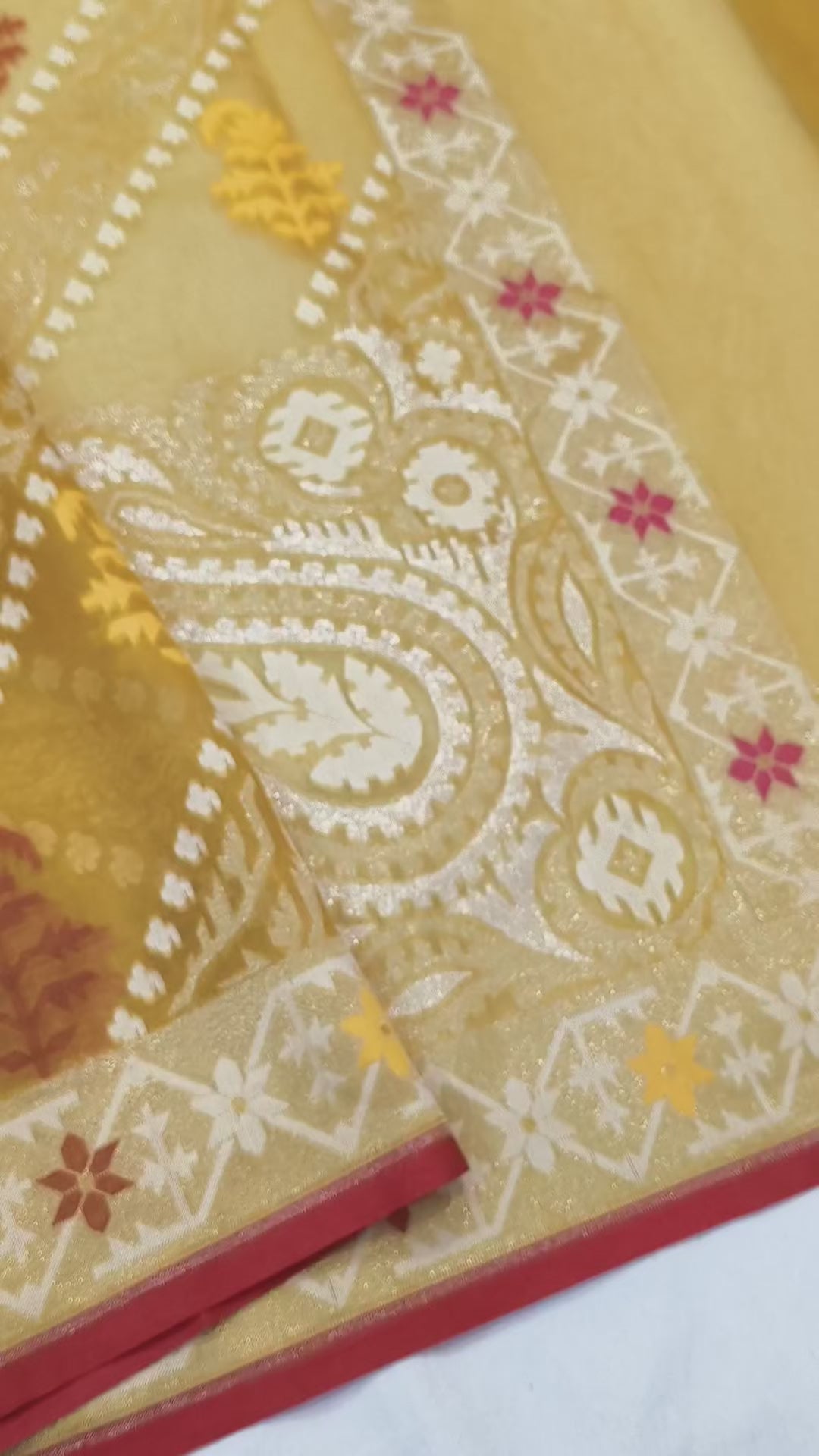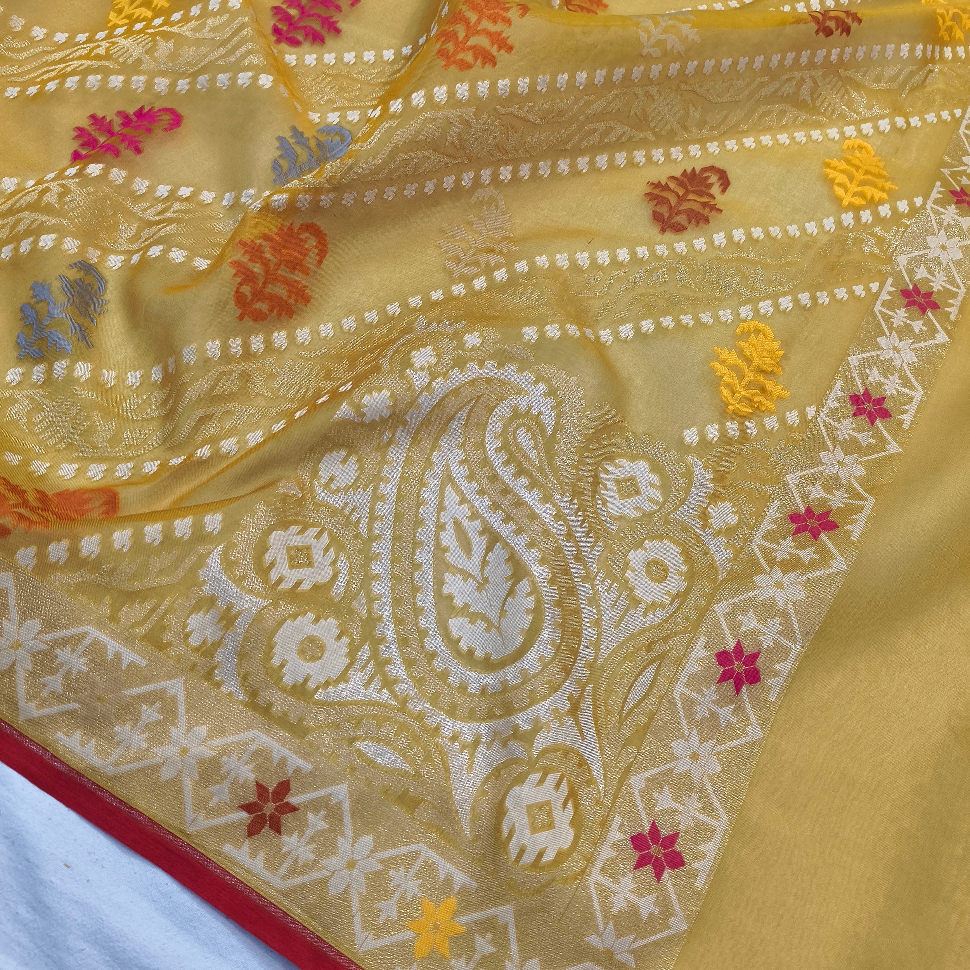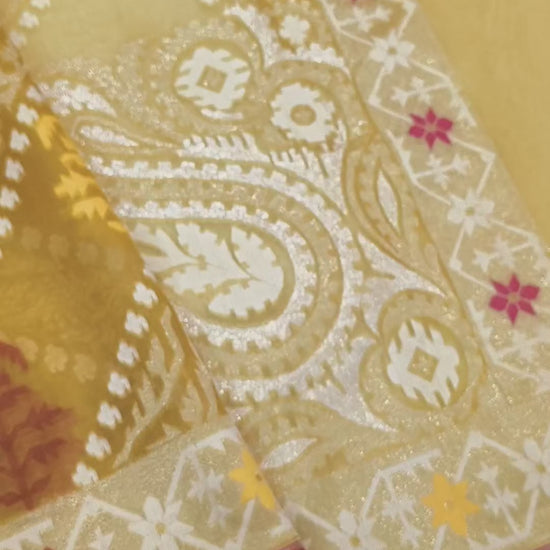 Pure Kora Silk Ektara Tilfi Cutwork Jamdani Banarasi Saree