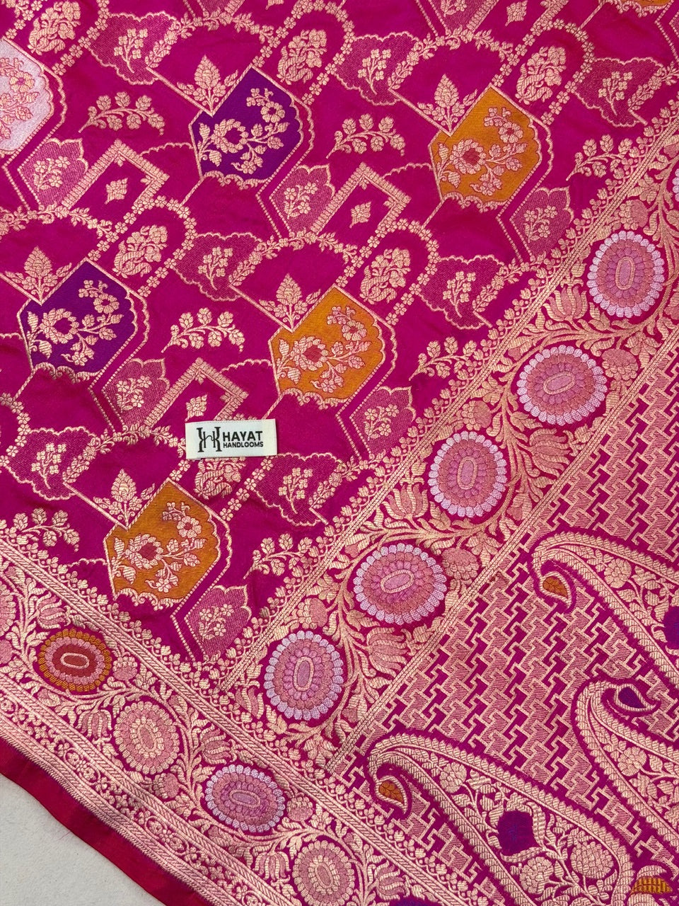 Rani Pink Banarasi Pure Katan Silk Saree | Pure Silk | Cutwork Technique | Banarasi Katan Silk Saree
