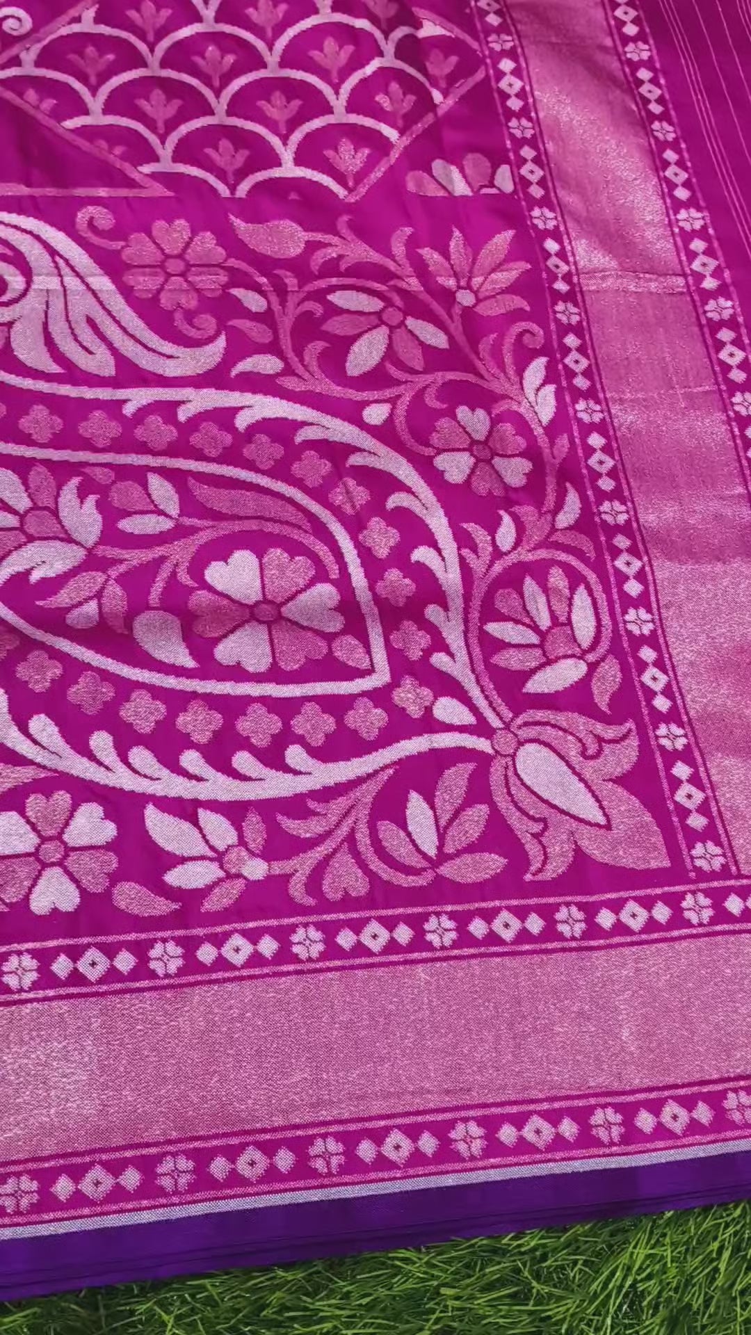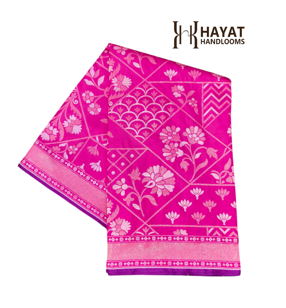 Dark pink pure katan silk ektara jamdani cutwork jaal banarasi saree