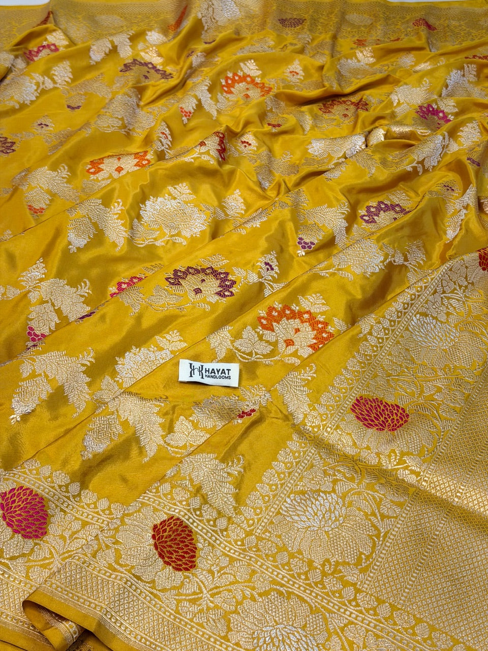 Yellow Pure Katan Silk Handwoven Banarasi Saree